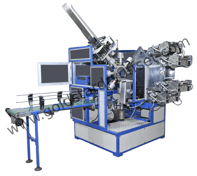 Four / Six Color UV Offset Pail Printing Machine (GD 135) guarantees high printing accuracy with features such as automatic loading, flame treatment, pre registration, auto unloading, etc. This Pail Printer includes centralized lubrication system, Micrometer lateral and radial plate cylinder adjustment. Complete vacuum system with pump that holds container on mandrels at neccessary position adds one of the important feature to our pail printing machine. This pail printer can printing about 800 impression per hour with a suitablity to print from 1 litre pail to 20 litres of pail.